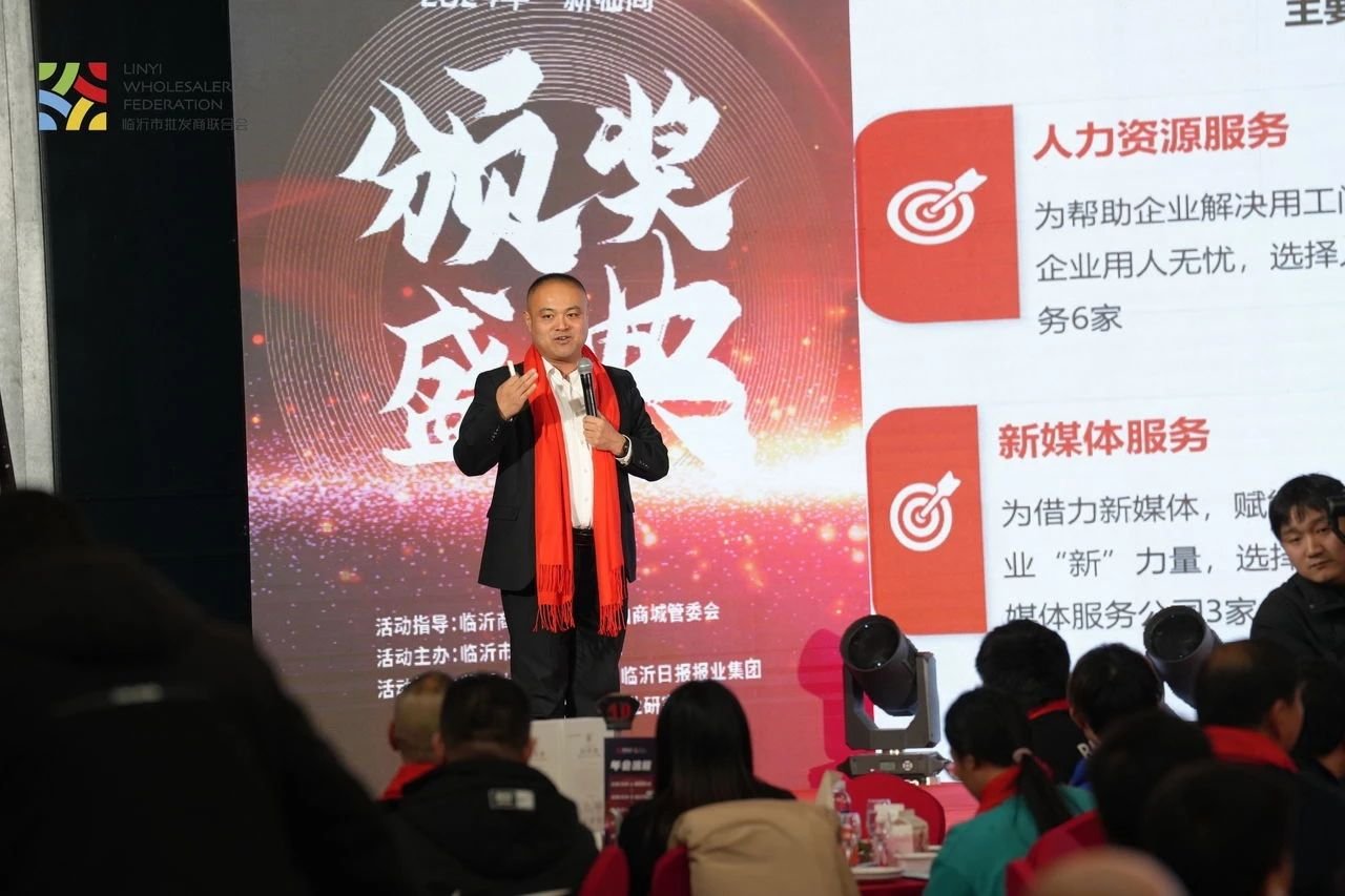 On the afternoon of January 25th, under the guidance of Linyi Mall Management Committee and Lanshan Mall Management Committee, and sponsored by Linyi Wholesalers Federation, The 2024 “New Business” Award Ceremony and the annual meeting of Linyi Wholesalers Federation were held in Blue Ocean Mall, which was co-organized by School of Logistics of Linyi University, Linyi Daily Newspaper Group and Linyi Research Institute of Commerce and Logistics Technology.